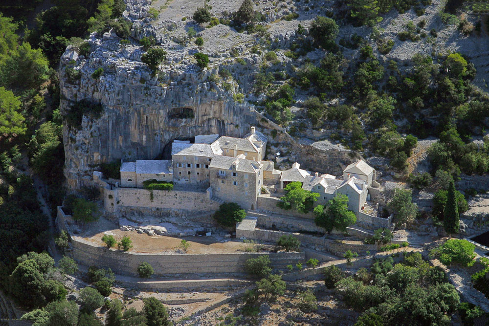 On the southern hillside of Mount St. Vid, in the vicinity of the village Murvica, there is the Dragon’s cave (Zmajeva špilja), which, according to a legend, used to be a temple and a sanctuary for the friars from Poljice. Pustinja (hermitage) Blaca is a fantastic natural and cultural phenomenon established by the Glagolitic friars from Poljice, who came to Brač fleeing from the Turks and who erected the monastery, the church and their abode right next to a cliff. This unique symbol of human labour and persistence is a museum in which historical, economic, artistic and scientific content is to be found.