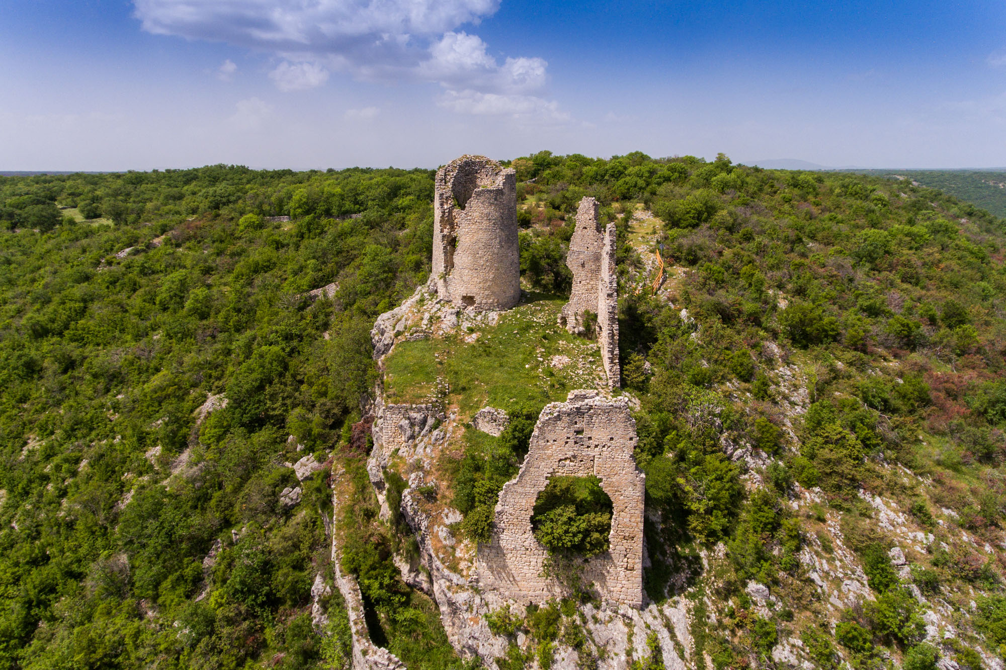 Upstream along the Krka is Roški slap waterfall, a wide waterfall made up of the main waterfall and numerous backwaters, cascades (popularly called the Necklaces by the locals) and tufa islands. Nearby is the 8.5 km long educational walking trail Stinice – Roški slap – Oziđana pećina cave, one of Croatia’s most beautiful walking trails. Oziđana pećina cave is a site of exceptional archaeological, natural, cultural and historical value, and the cave contains an in situ archaeological collection.
