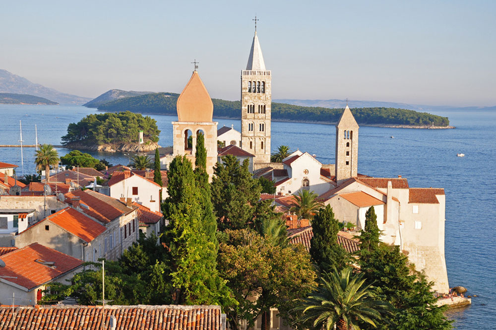 One of the island’s most famous attractions is certainly the town of Rab, a place of notable beauty. Medieval walls encircle the whole of the city, protecting its churches, palaces and impressive Romanesque bell towers, making the town resemble a huge sailboat with four masts.
